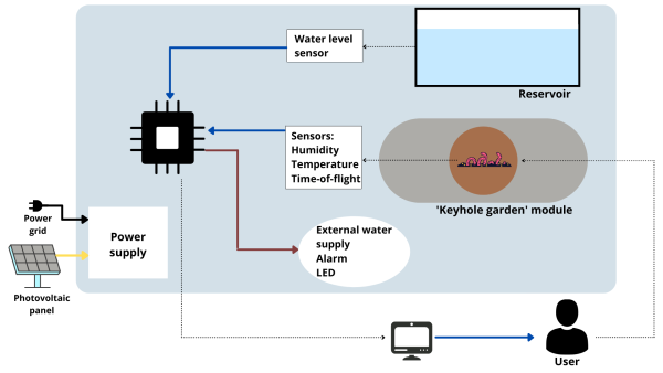 | Temperature and humidity sensor to ensure an optimal environment for the eco-system. | Microcontroller processes the information from both sensors and notifies the user when any adjustments need to be made. |