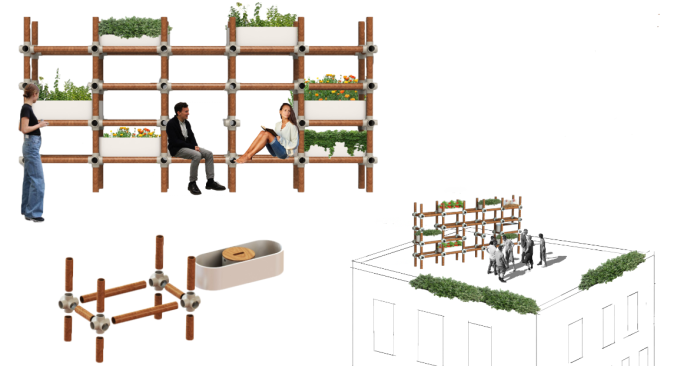 The product can be improved on different aspects. For example, there is a big opportunity for improvement in terms of the rainwater collecting system. A possible improvement could be to include a pumping system. In the current design, the user has to water the plants himself. He will have to fill a watering can with water from the rainwater collector and then administer it to the plants. If a pumping system were provided, it would save effort for the user. To develop an efficient pumping system, that can be adapted according to the number of modules, specific knowledge and research are required.