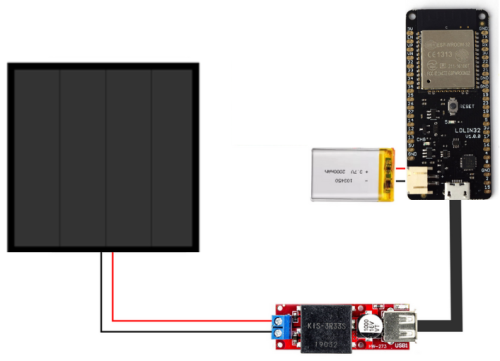 Figure 46 illustrates the connections made to power the system through the solar panel and lithium battery.