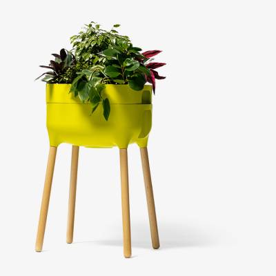 The most important goal of the prototype is to illustrate the working of the flowerpot with the integrated keyhole garden. In the composting bin, we put a layer of cardboard in the small centre basket and a layer of food waste. We started adding the worms, and then a layer of shredded cardboard and leaves. The soil was inserted around the basket in the centre. We planted two types of herbs in our flowerpot: mint and basil. The plants looked healthy and continued to grow for the two weeks we supervised them. Figure 44 presents our prototype.