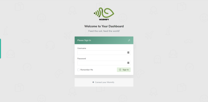 The data collected from the previous code is sent to Wormify's website. The information displayed on the website is shown in real-time and allows the user to monitor the system remotely. Figures 53 and 54 show,respectively, the pages to create a new account and to sign in to an already existing account. Figure 55 exhibits the layout and information displayed on Wormify’s website. Wormify
